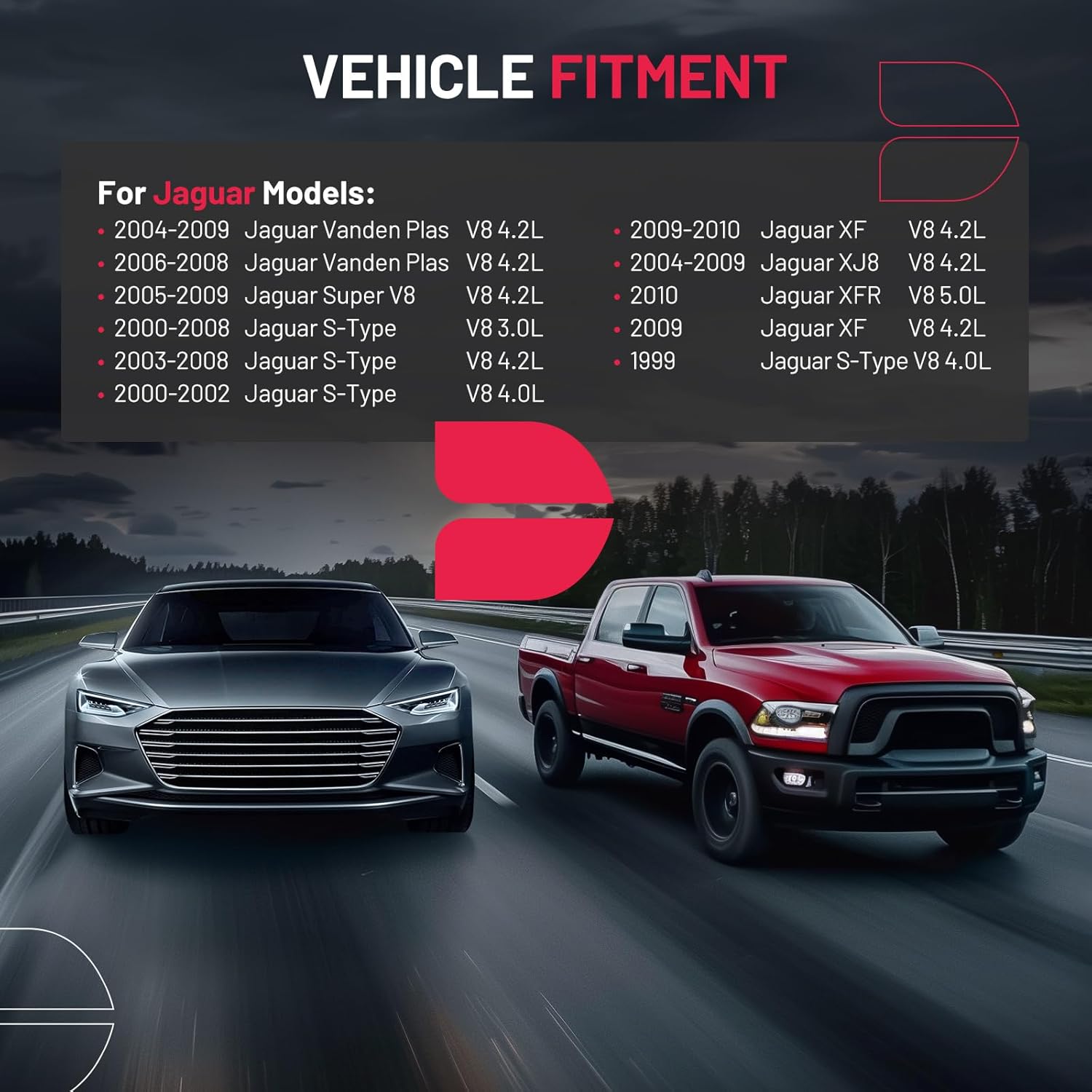 【Precautions】Please confirm compatibility based on your vehicle's year, brand, model, and the OE number of the replacement parts. Compatible with Jaguar 2009-2010 XF XFR V8 4.2L, 2004-2009 XJ8 V8 4.2L, 2004-2009 Vanden Plas V8 4.2L, 2005-2009 Super V8 V8 4.2L, 2000-2002 S-Type V8 4.0L.etc. More information can be found in the pictures or on the details page.