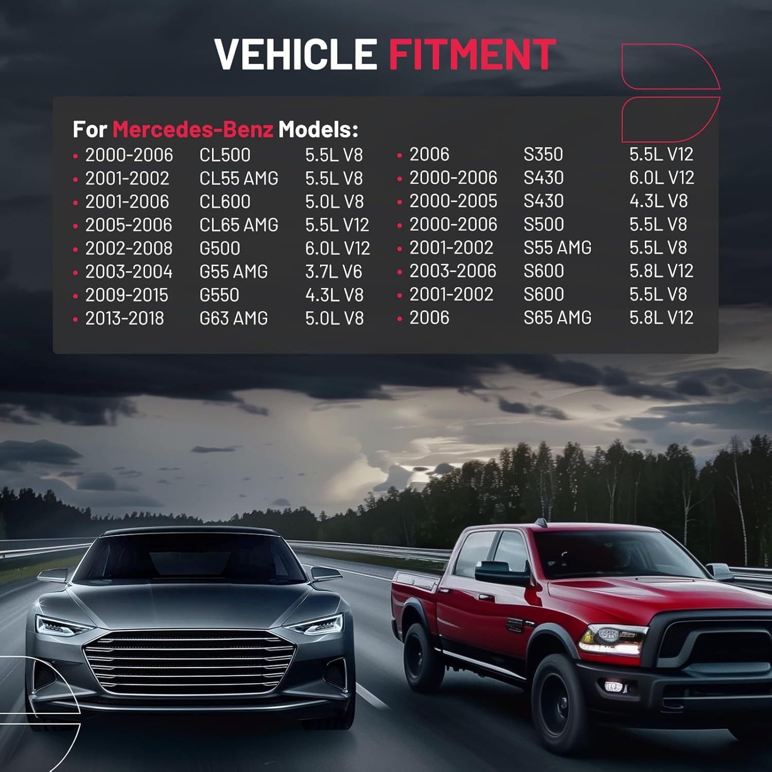 【Precautions】Please confirm compatibility based on your vehicle's year, brand, model, and the OE number of the replacement parts. Compatible with Mercedes-Benz 2000-2006 CL500 CL600, 2001-2002 CL55 AMG, 2005-2006 CL65 AMG, 2002-2008 G500 G55 AMG, 2009-2015 G550 G63 AMG, 2000-2006 S350 S430 S500 S55 AMG, 2001-2006 S600 S65 AMG. More information can be found in the pictures or on the details page.