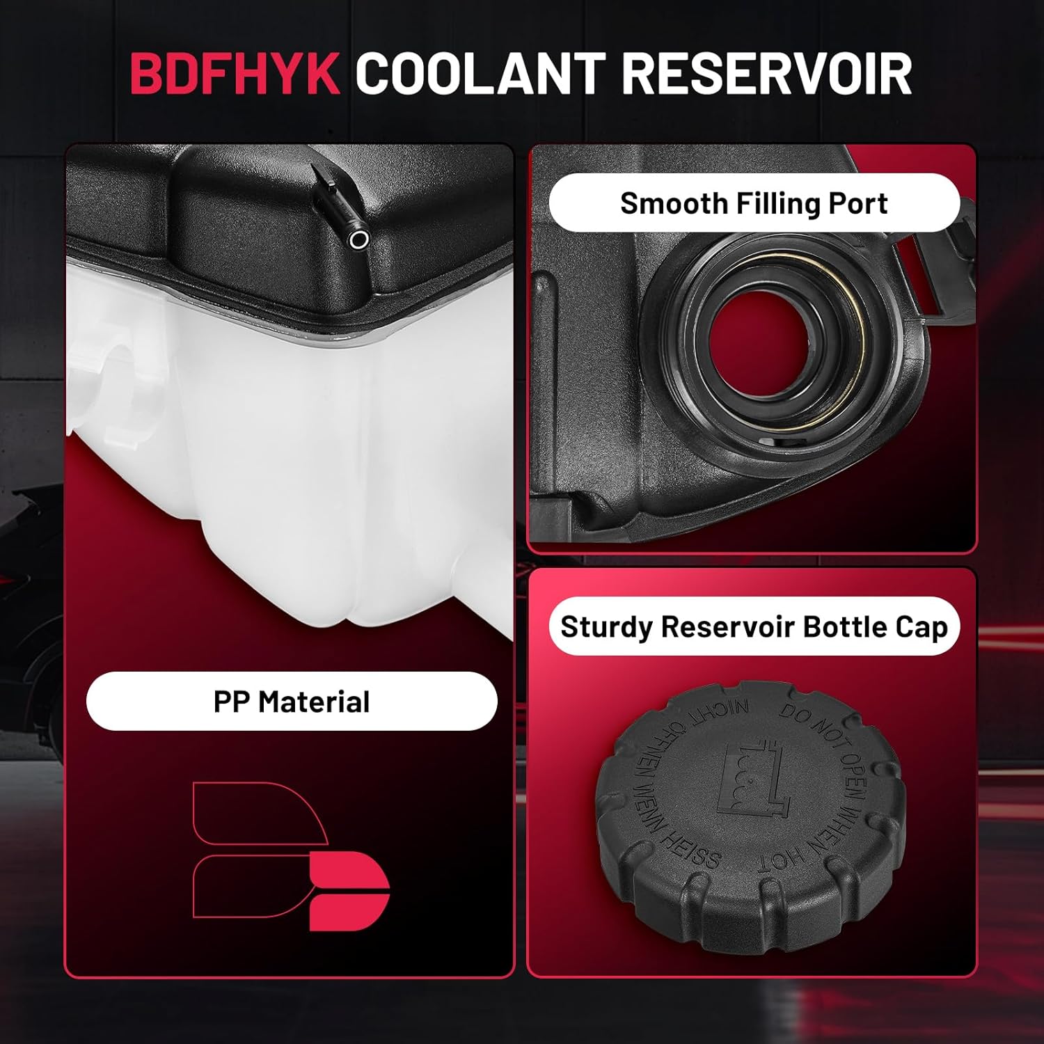 【Coolant Reservoir Features】This coolant overflow tank is made of high quality PP material, which helps to reduce oil dilution, fuel consumption, prevent oil leakage and reduce the pressure of car cooling system. You can directly see the internal antifreeze level without opening the radiator cap to avoid damaging parts.