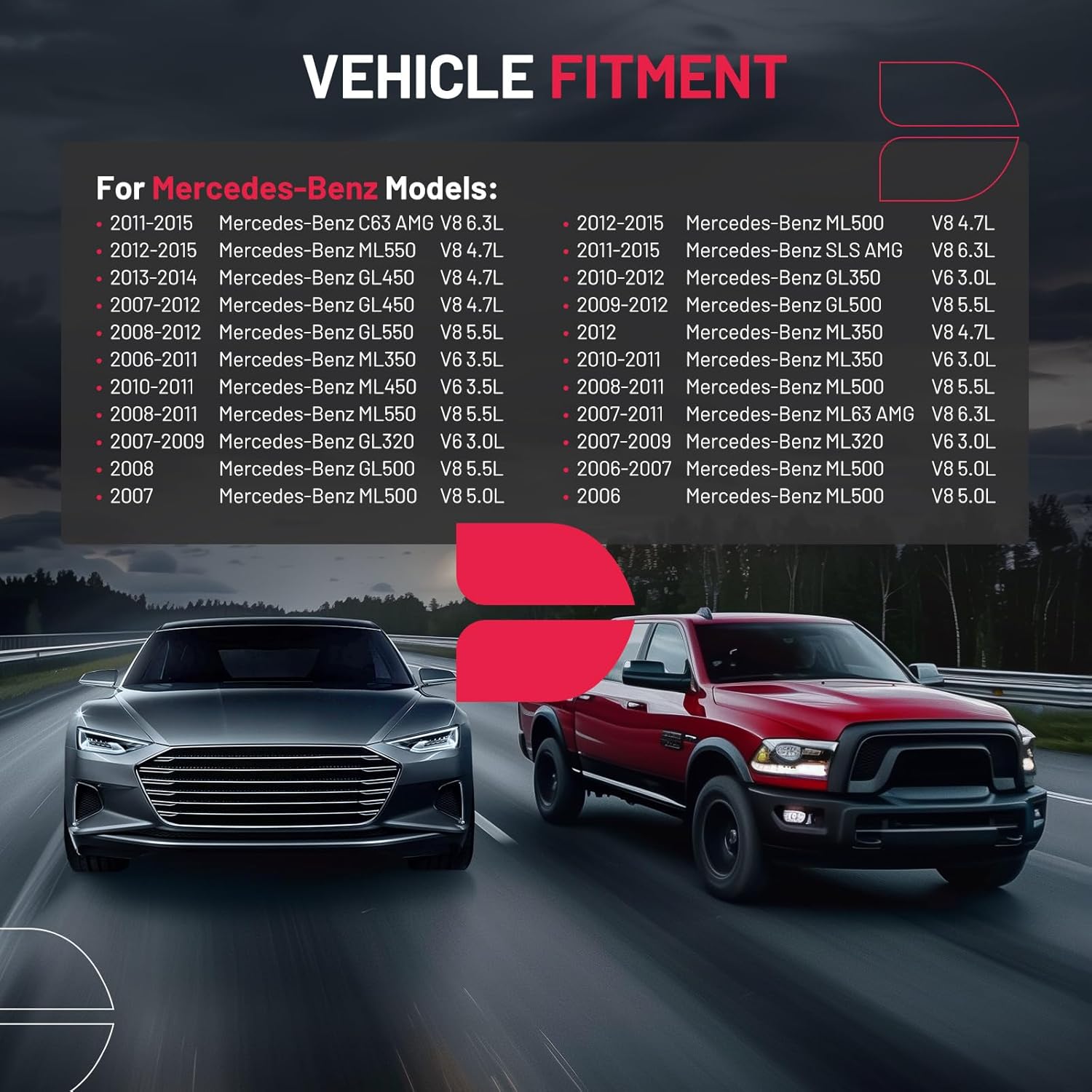 【Precautions】Please confirm compatibility based on your vehicle's year, brand, model, and the OE number of the replacement parts. Compatible with Mercedes-Benz 2011-2015 C63 SLS ML63 AMG V8 6.3L, 2012-2015 ML320 ML350 ML450 ML500 ML550 V8 4.7L, 2013-2014 GL320 GL350 GL450 GL500 GL550 V8 4.7L.etc. More information can be found in the pictures or on the details page.