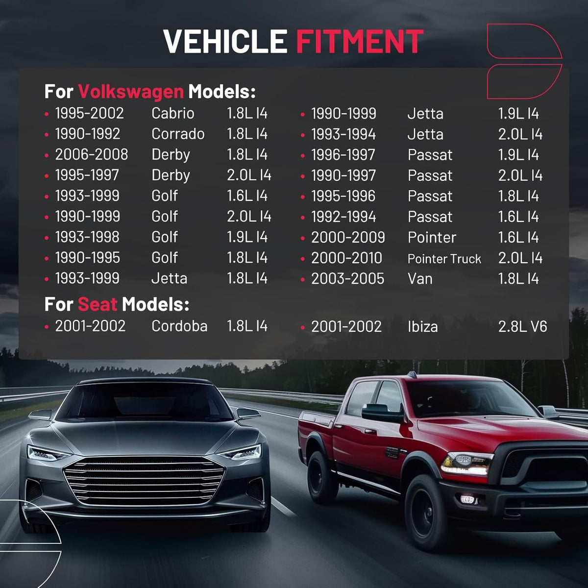 【Precautions】Please confirm compatibility based on your vehicle's year, brand, model, and the OE number of the replacement parts. Compatible with VW 1995-2002 Cabrio,1990-1992 Corrado, 2006-2008 Derby, 1995-1997 Derby, 1990-1999 Golf, 1990-1999 Jetta, 1990-1997 Passat, 2000-2009 Pointer, 2000-2010 Pointer Truck, 2003-2005 Van; Compatible with Seat 2001-2002 Cordoba, 2001-2002 Ibiza. More information can be found in the pictures or on the details page.