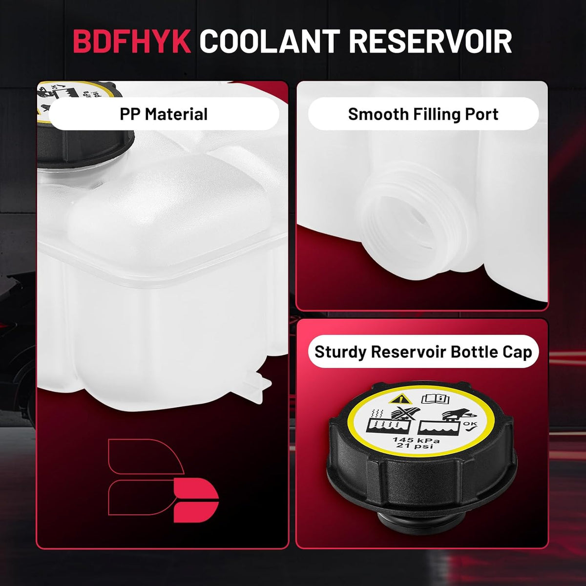 【Coolant Reservoir Features】This coolant overflow tank is made of high quality PP material, which helps to reduce oil dilution, fuel consumption, prevent oil leakage and reduce the pressure of car cooling system. You can directly see the internal antifreeze level without opening the radiator cap to avoid damaging parts.