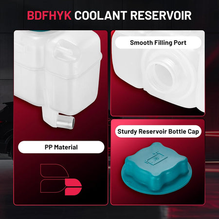 【Coolant Reservoir Features】This coolant overflow tank is made of high quality PP material, which helps to reduce oil dilution, fuel consumption, prevent oil leakage and reduce the pressure of car cooling system. You can directly see the internal antifreeze level without opening the radiator cap to avoid damaging parts.