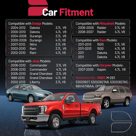 [Fitment]: The engine oil pumps fit Compatible with Chrysler Aspen 2007-2009 4.7L, Compatible with Dodge Dakota 2004-2012 3.7L/4.7L, Durango 2000-2009 3.7L/4.7L, Nitro 2007-2012 3.7L, Ram 2002-2010 3.7L/4.7L, Compatible with Jeep Commander 2006-2010 3.7L/4.7L, Grand Cherokee 1999-2010 3.7L/4.7L, Liberty 2002-2013 3.7L, Compatible with Mitsubishi Raider 2006-2009 3.7L/4.7L, Ram 1500 2011-2013, Dakota 2011 3.7L/4.7L