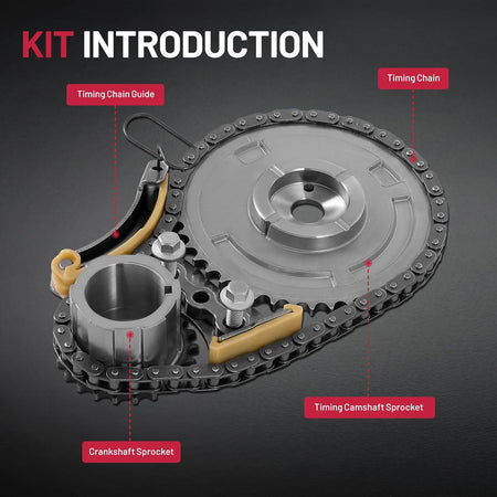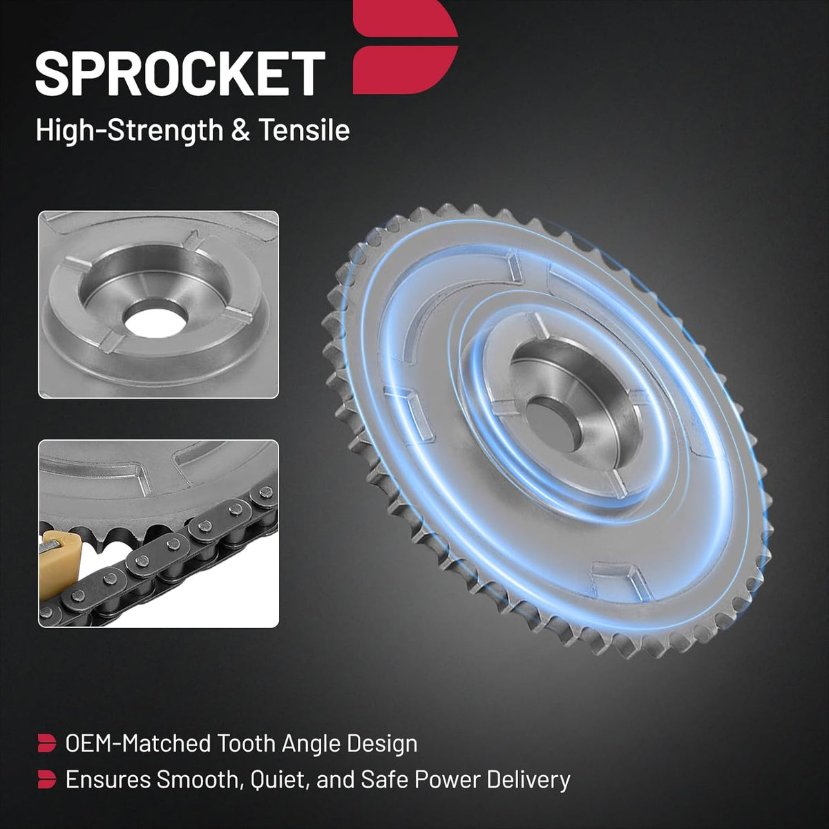 [Full Timing Chain Kit] This kit uses a reinforced, heat-treated chain for high strength and heat resistance. Each component is tested to OEM standards for precise camshaft and crankshaft timing. The complete set saves time by replacing the need for separate parts and allows easier installation. Designed to support smooth acceleration, stable power delivery, and longer engine service life while helping reduce the risk of costly valve or piston issues
