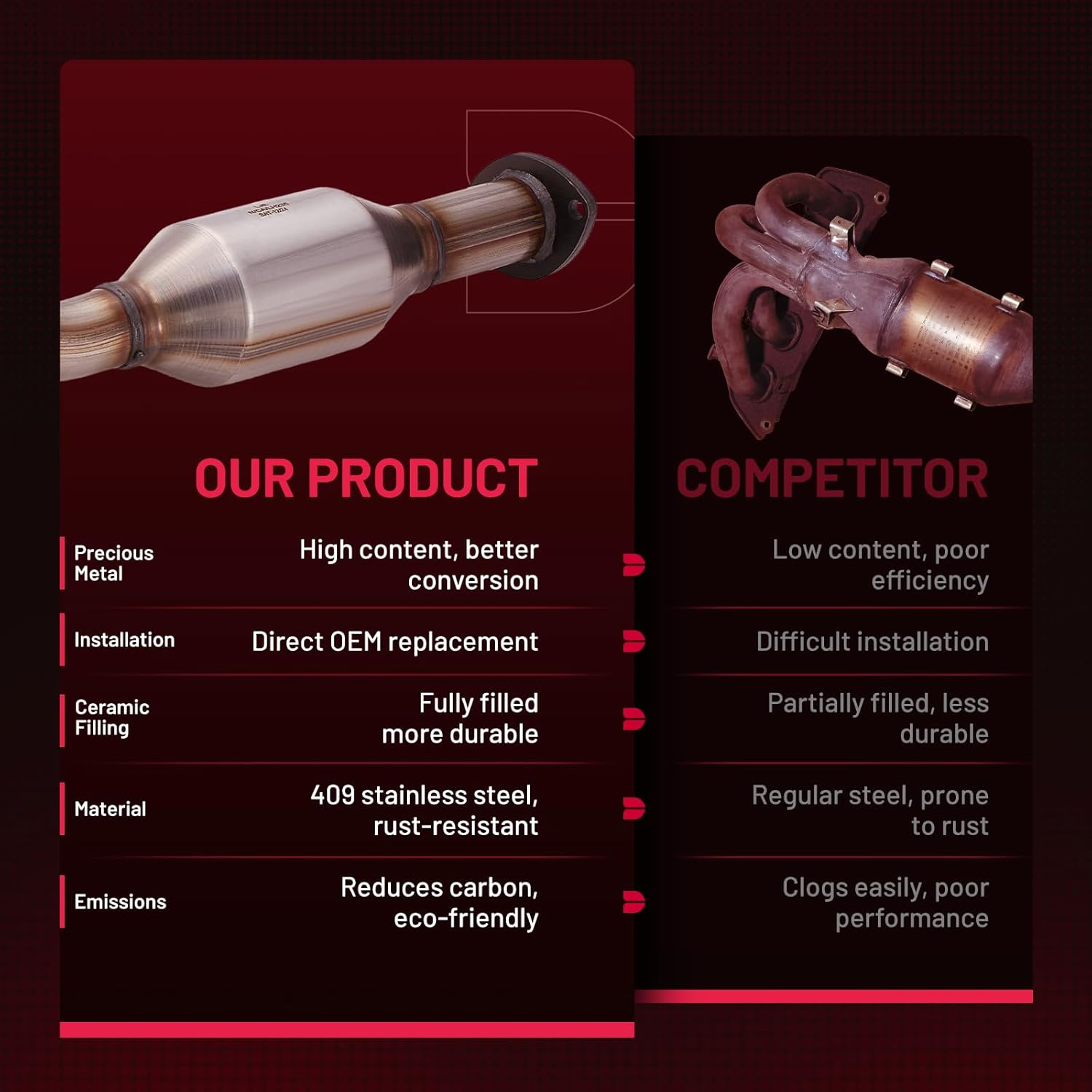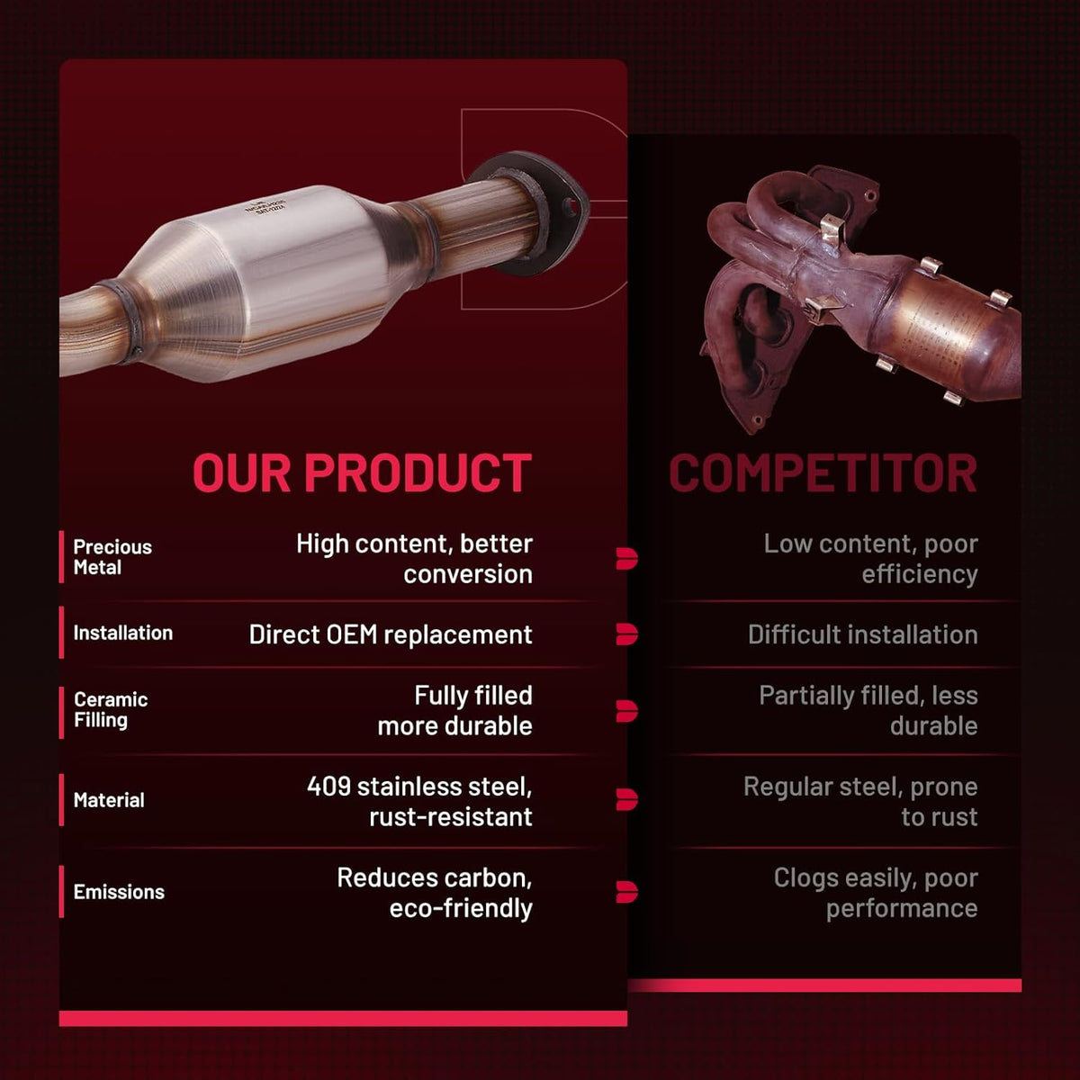 【High Quality】The catalyst converter body Made of high quality stainless steel, with better high temperature resistance, oxidation and corrosion resistance, sturdy for long service time. contains Platinum, Rhodium, Palladium rare metals to catalyze harmful tail gases to zero efficientl, to enhance purification efficiency and intensity, Compliant EPA standards. Direct-fit compatible with original equipment, ensuring seamless installation.