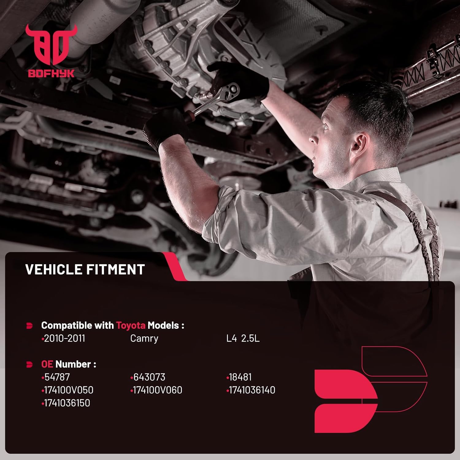 【Vehicle Fitment】 Compatible with Toyota Camry 2010-2011 L4 2.5L Naturally Aspirated. Reference Number: 54787, 643073, 18481, 174100V050, 174100V060, 1741036140, 1741036150
