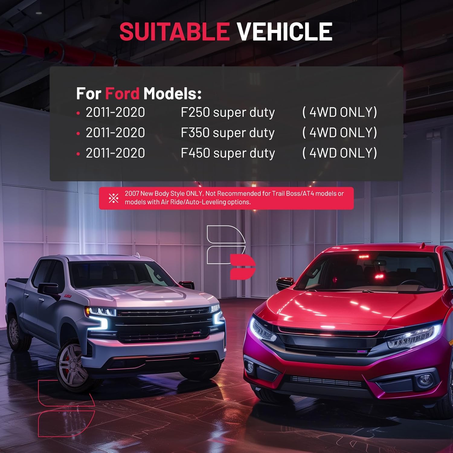【APPLICABLE MODELS】2.5” Leveling Kit Compatible with 2011-2020 Ford F-250 Super Duty V8 & 2011-2020 F-250 Super Duty V8 & 2020 F-250 Super Duty V8 & 2011-2020 F-350 Super Duty V8 & 2011-2020 F-350 Super Duty V8 & 2020 F-350 Super Duty V8 & 2020 F-450 Super Duty V8 & 2011-2020 F-450 Super Duty V8 & 2011-2019 F-450 Super Duty GAS.