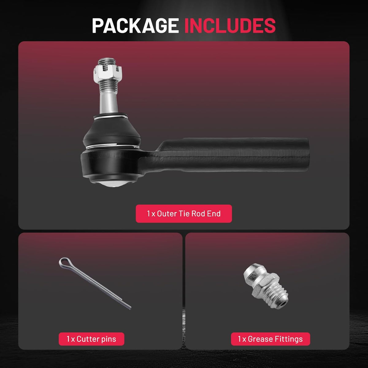【Tie Rod Ends Kit Include】1 x ES800223 Front Outer Tie Rod End, 1 x Grease Fittings, 1 x Cutter pins.