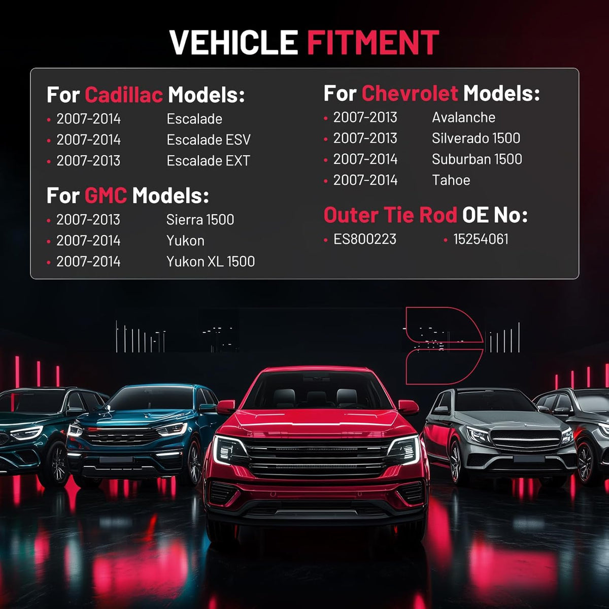 BDFHYK Front and Outer Tie Rod End Compatible with Chevrolet Avalanche 07-13, Silverado 1500 07-13, Compatible with GMC Yukon XL 1500 07-14, Compatible with Cadillac Escalade 07-14, Replaces ES800223