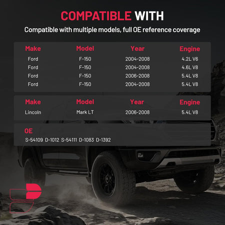 【Precise Vehicle Compatibility】: Compatible with Ford F-150 2004 2005 2006 2007 2008, Compatible with Lincoln Mark LT 2006 2007 2008, Reference OE Number: S-54109, S-54111, D-1083, D-1392, D-1012