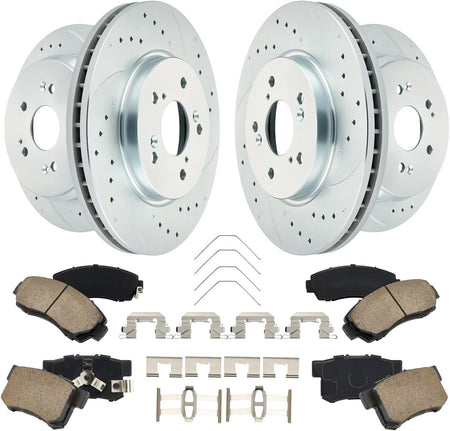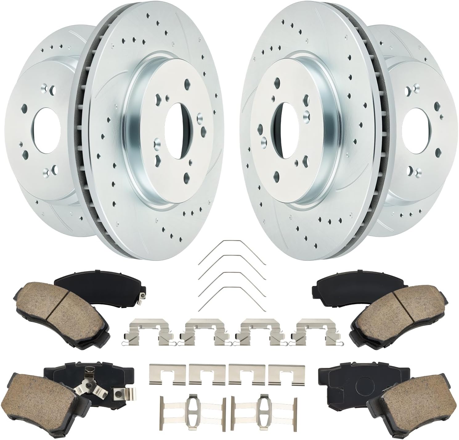 BDFHYK Front and Rear Brake Kit Compatible with Honda CR-V 2012 2013 2014 2015 2016, L4 2.4L, Drilled Slotted Brakes Rotors and Ceramic Brake Pads, Replace S-31455, S-31372, D-1521, D-1086