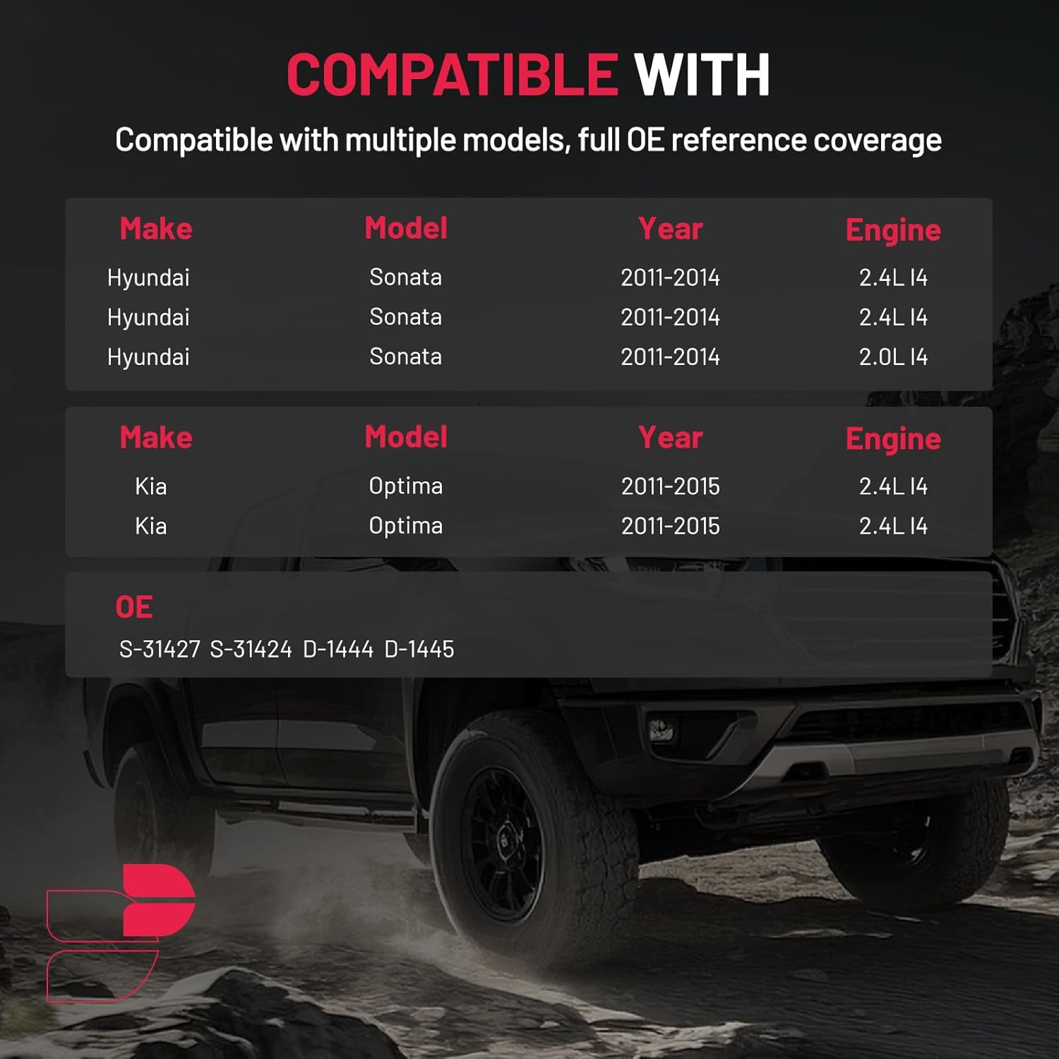 【Precise Vehicle Compatibility】: Compatible with Hyundai Sonata 2011 2012 2013 2014, Compatible with Kia Optima 2011 2012 2013 2014 2015, L4 2.4L, Reference OE Number: S-31427, S-31424, D-1444, D-1445