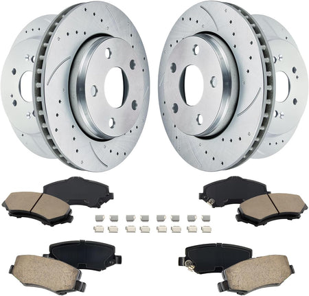 【Brake Kit Includes】: 2 x Front Drilled Slotted Brake Rotors, 2 x Front Ceramic Brake Pads, easy installation with no modifications required.