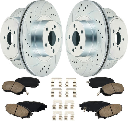 【Brake Kit Includes】: 2 x Front Drilled Slotted Brake Rotors, 2 x Front Ceramic Brake Pads, easy installation with no modifications required.