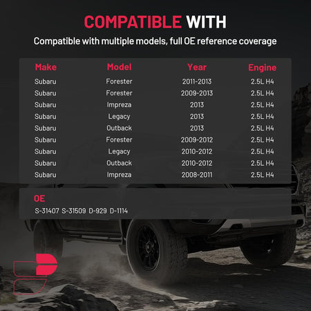 【Precise Vehicle Compatibility】: Compatible with Subaru Impreza 2008-2011, Compatible with Subaru Forester 2009-2013, Compatible with Subaru Legacy 2010-2013, Compatible with Subaru Outback 2010-2013, Reference OE Number: S-31407, S-31509, D-929, D-1114