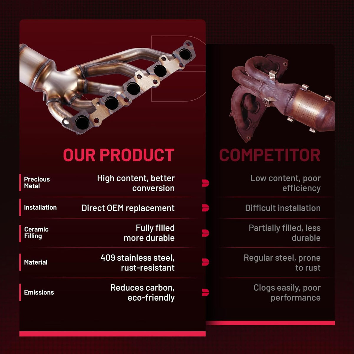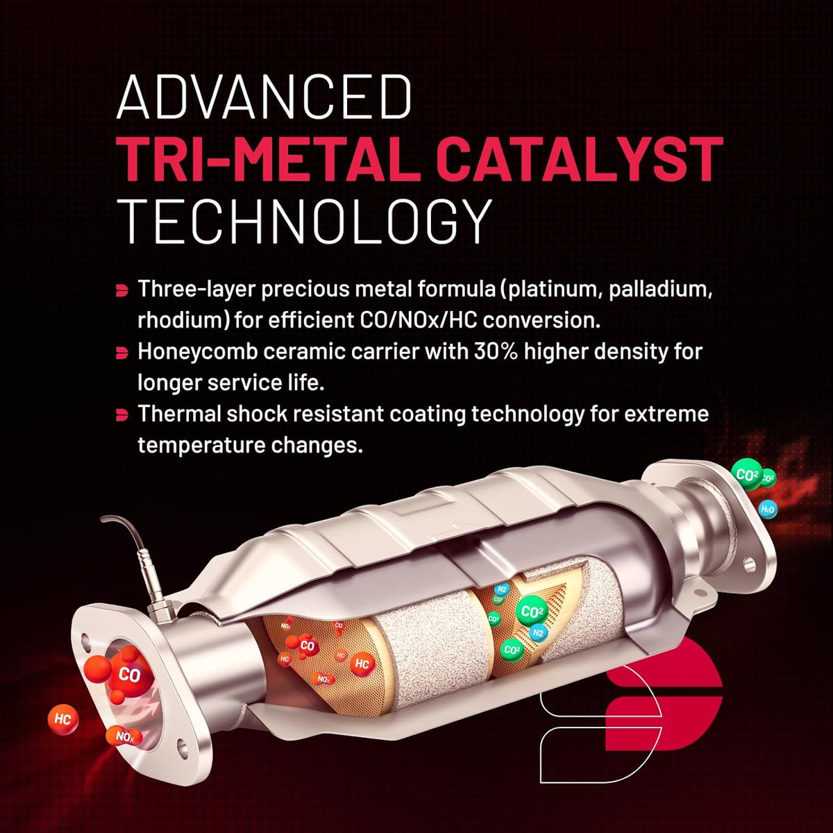 【High Quality】The catalyst converter body Made of high quality stainless steel, with better high temperature resistance, oxidation and corrosion resistance, sturdy for long service time. contains Platinum, Rhodium, Palladium rare metals to catalyze harmful tail gases to zero efficientl, to enhance purification efficiency and intensity, Compliant EPA standards. Direct-fit compatible with original equipment, ensuring seamless installation.