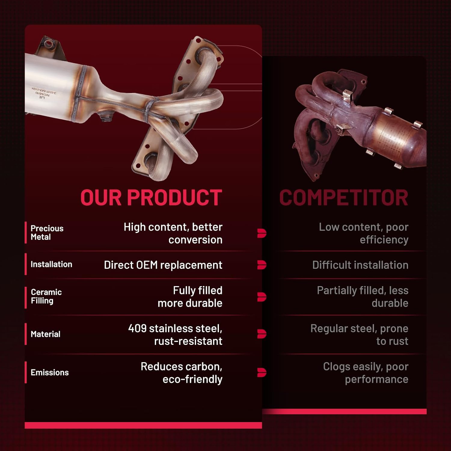 【High Quality】The catalyst converter body Made of high quality stainless steel, with better high temperature resistance, oxidation and corrosion resistance, sturdy for long service time. contains Platinum, Rhodium, Palladium rare metals to catalyze harmful tail gases to zero efficientl, to enhance purification efficiency and intensity, Compliant EPA standards. Direct-fit compatible with original equipment, ensuring seamless installation.