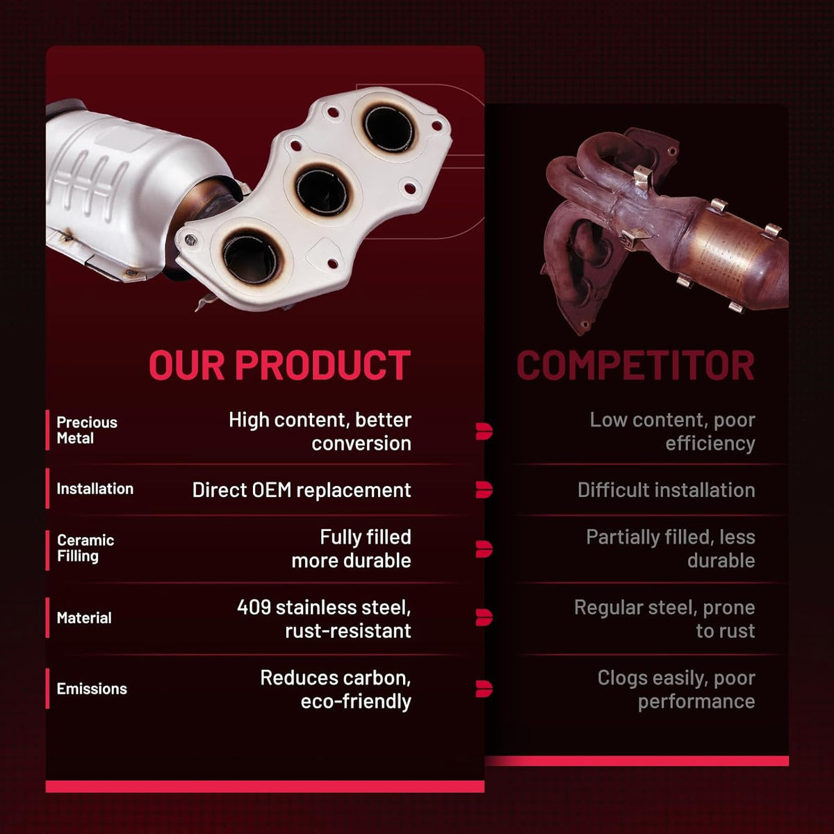【Buy with Confidence】 We offer a wide variety of automotive accessory categories, ensuring that you can hit the road with peace of mind. We are committed to providing a 12-month quality guarantee for your peace of mind. If you encounter any issues with our catalytic converters, please contact us immediately, we will respond within 48 hours.