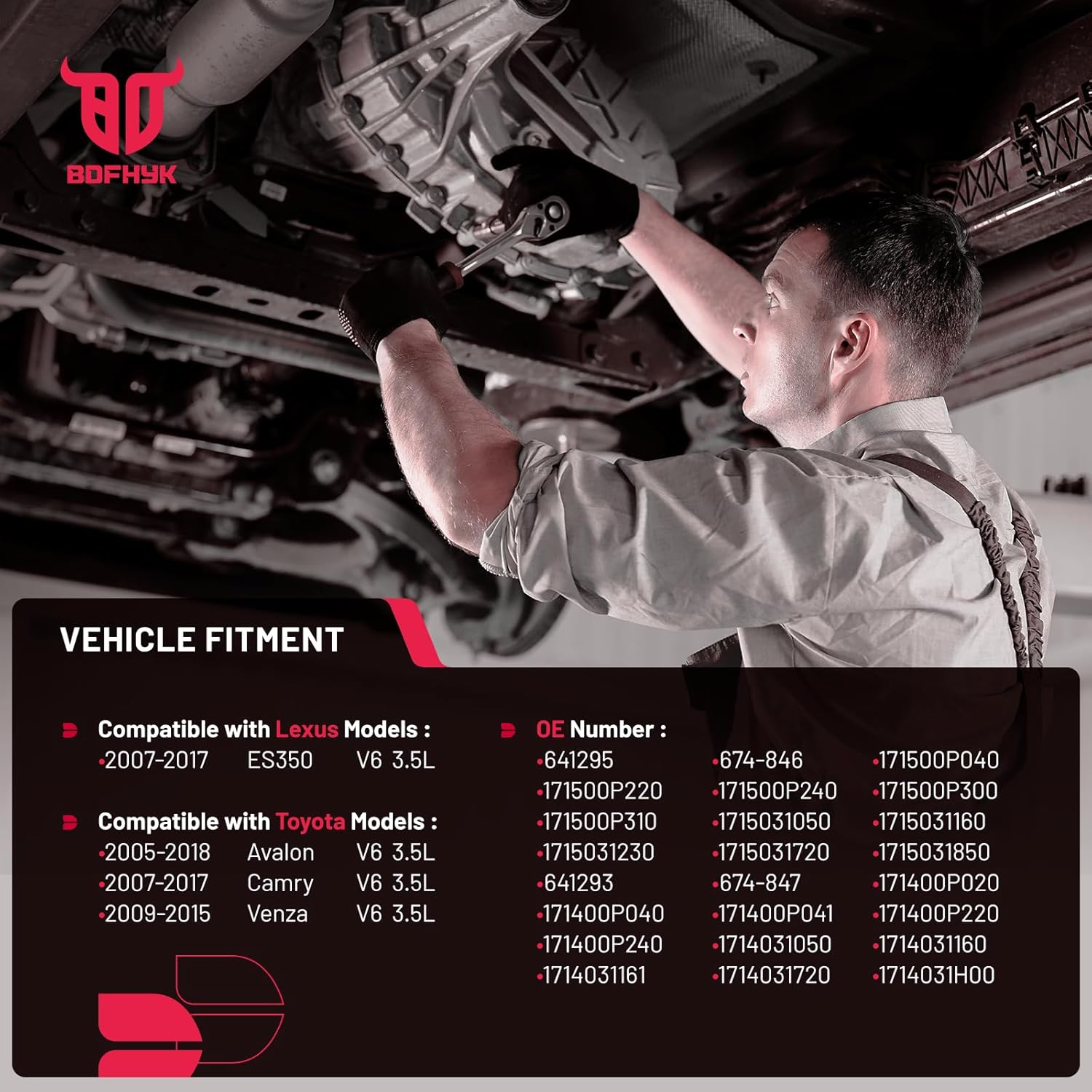 【Vehicle Fitment】 Compatible with Lexus ES350 2007-2017 V6 3.5L. Compatible with Toyota Avalon 2005-2018, Camry 2007-2017, Venza 2009-2015, V6 3.5L. Reference Number: 641295, 674-846, 171500P040, 171500P220, 171500P240, 171500P300, 171500P310, 1715031050, 1715031160, 1715031230, 1715031720, 1715031850, 641293, 674-847, 171400P020, 171400P040, 171400P041, 171400P220, 171400P240, 1714031050, 1714031160, 1714031161, 1714031720, 1714031H00