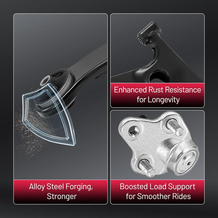 [Control arm design] Designed with forged alloy steel, this OEM-compatible product ensures premium quality, improved performance, simple installation, and reduced noise for a seamless experience.