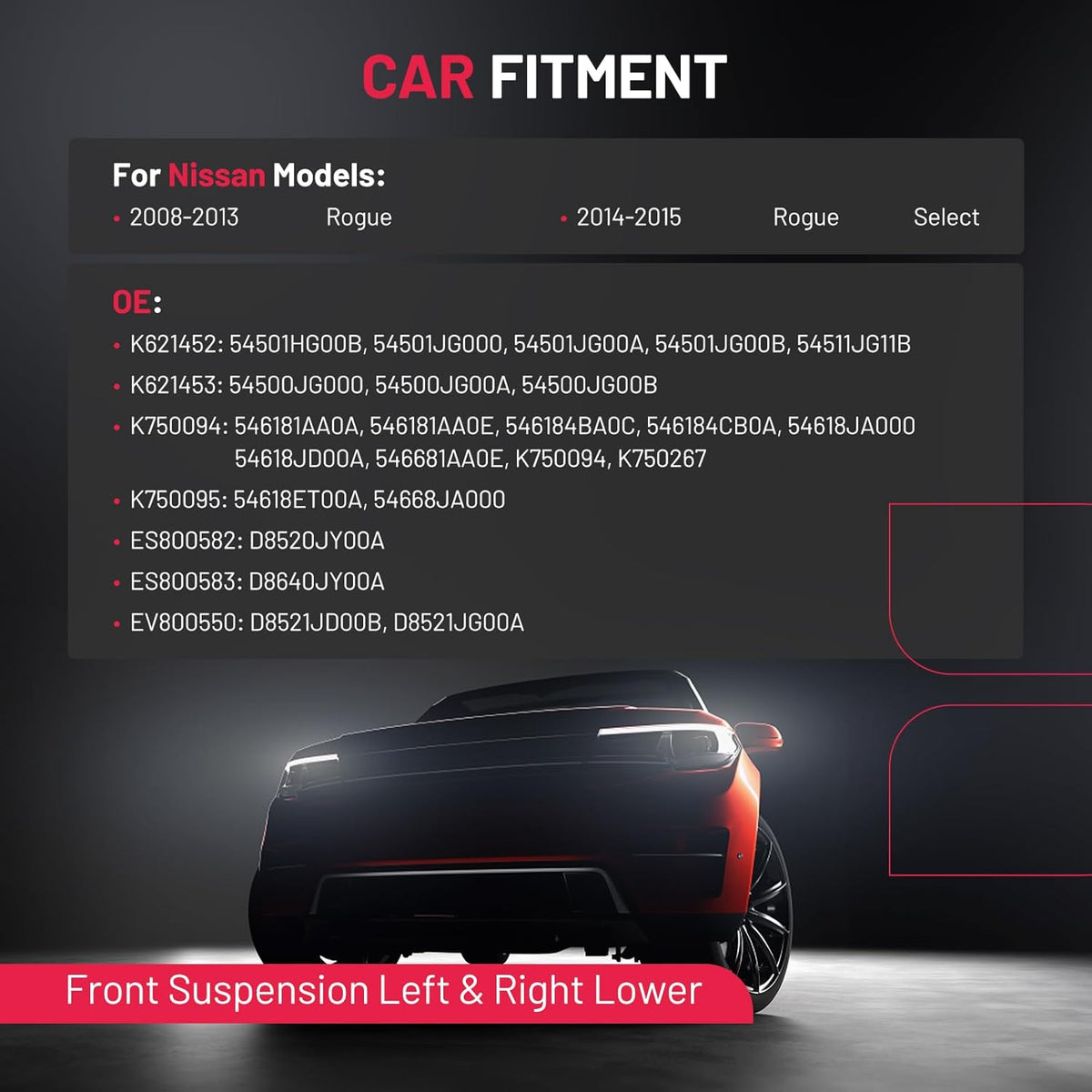 BDFHYK Front Lower Control Arm 8pcs,with Ball Joint Compatible with 2008-2015 Nissan Rogue/Rogue Select K621452 K621453 K750094 K750095 ES800582 ES800583 EV800550