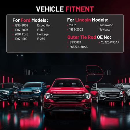 【OE Standard Performance】Exquisite craftsmanship design,100% brand new high quality auto parts, OE grade durability, bring you ultimate comfortable driving experience.Outer Tie Rod OE No. ES3366T, 2L3Z3A130AA, F65Z3A130AA.
