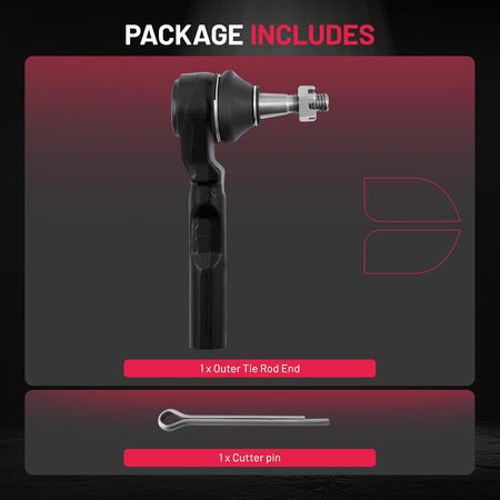 【Tie Rod Ends Kit Include】1 x ES800086 Front Outer Tie Rod End, 1 x Cutter pin.