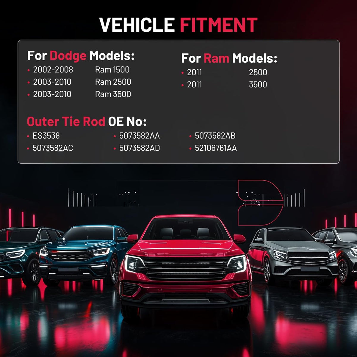 BDFHYK Front Outer Tie Rod End Compatible with Dodge 2002-2008 Ram 1500, 2003-2010 Ram 2500, 2003-2010 Ram 3500 Replacement for ES3538 5073582AA 5073582AB 5073582AC 5073582AD 52106761AA
