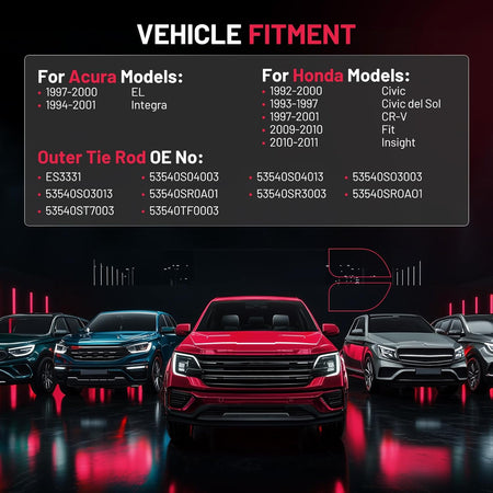 【OE Standard Performance】Exquisite craftsmanship design,100% brand new high quality auto parts, OE grade durability, bring you ultimate comfortable driving experience.Outer Tie Rod OE No. ES3331, 53540S04003, 53540S04013, 53540SO3003, 53540SO3013, 53540SR0A01, 53540SR3003, 53540SROAO1, 53540ST7003, 53540TF0003.