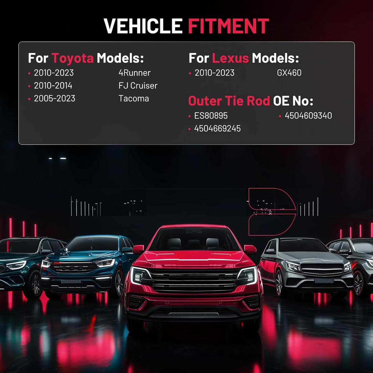 【Compatible with】Compatible with Lexus 2010-2023 GX460; Compatible with Toyota 2010-2023 4Runner, 2010-2014 FJ Cruiser, 2005-2023 Tacoma.etc.More information can be found in the pictures or on the details page.Please confirm compatibility based on your vehicle's year, brand, model, and the OE number of the replacement parts.