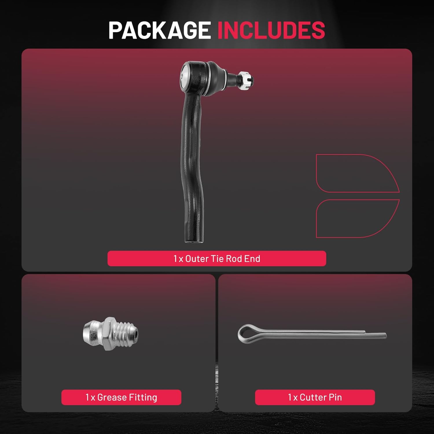 【Tie Rod Ends Kit Include】1 x ES800048 Front Outer Tie Rod End, 1 x Grease Fitting, 1 x Cutter pin.