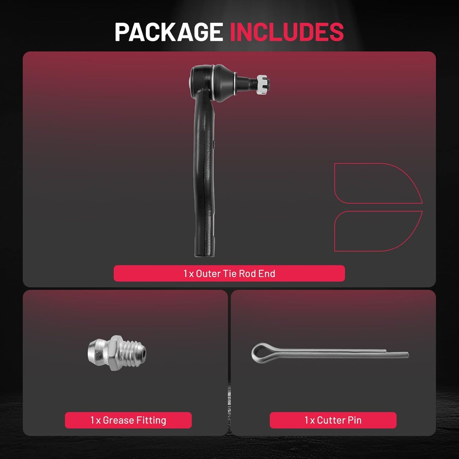 【Tie Rod Ends Kit Include】1 x ES800108 Front Outer Tie Rod End, 1 x Grease Fitting, 1 x Cutter pin.