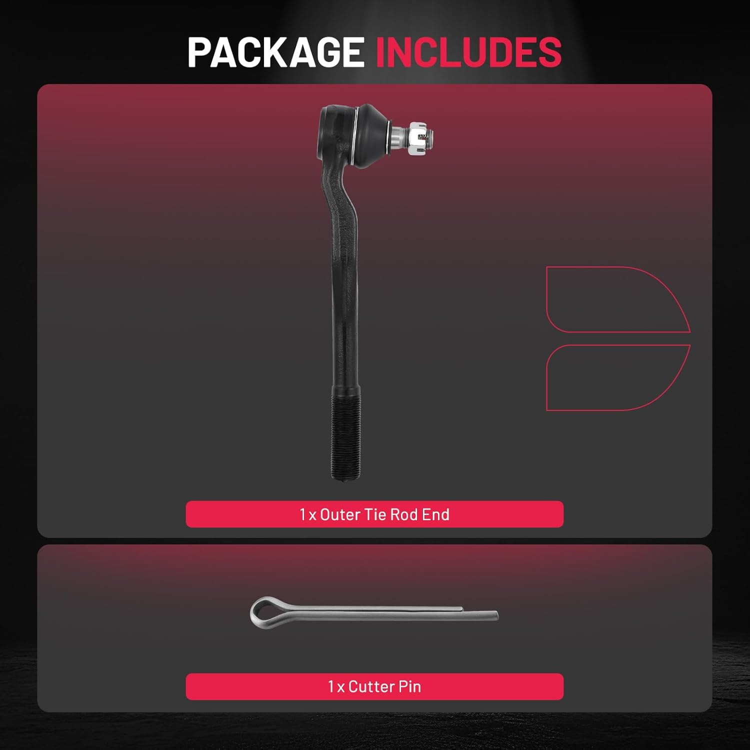 【Tie Rod Ends Kit Include】1 x ES3547 Front Outer Tie Rod End, 1 x Cutter pin.