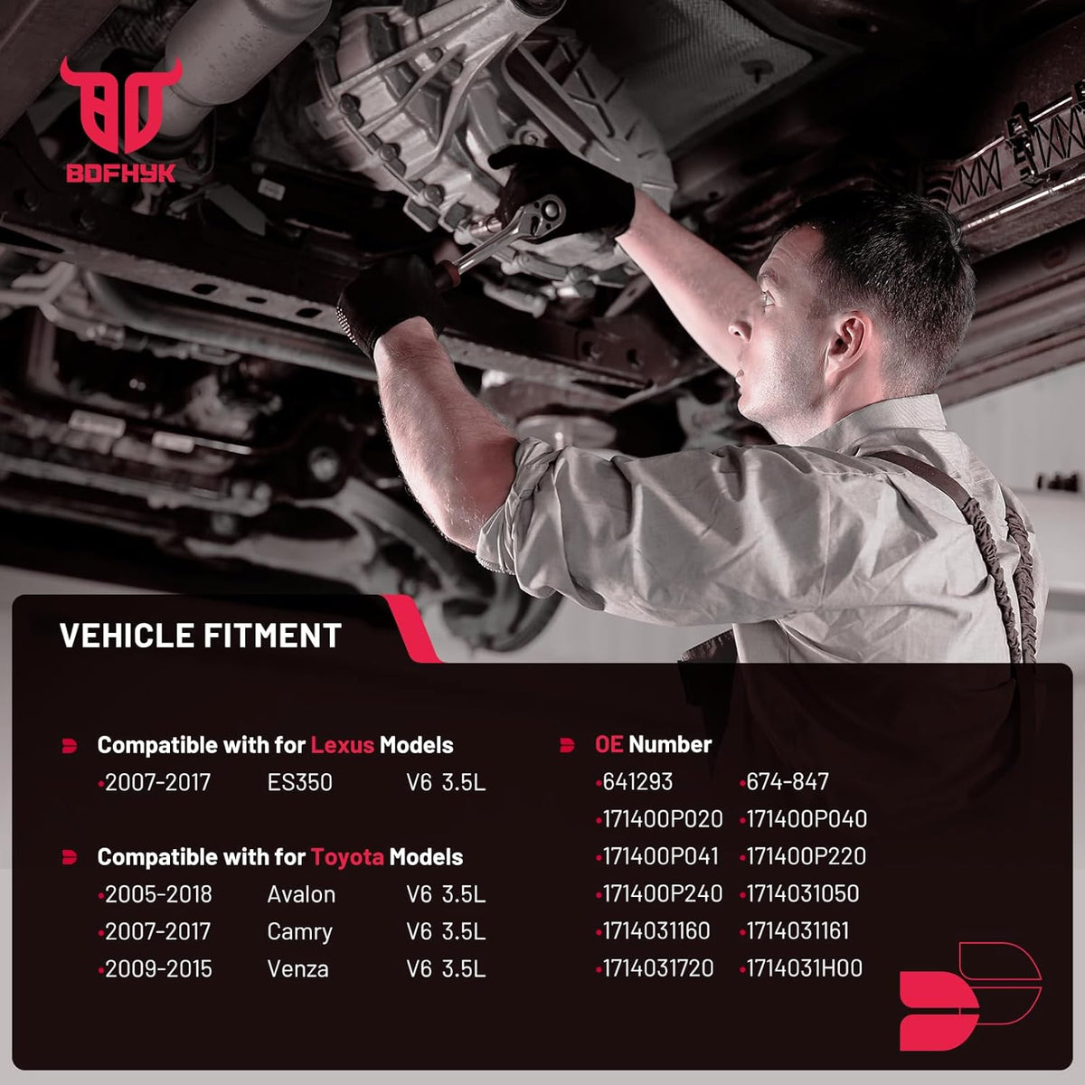 【Vehicle Fitment】 Compatible with Lexus ES350 07-17 V6 3.5L. Compatible with Toyota Avalon 15-18, Camry 07-17, Venza 09-15, V6 3.5L. Reference Number: 641293, 674-847, 171400P020, 171400P040, 171400P041, 171400P220, 171400P240, 1714031050, 1714031160, 1714031161, 1714031720, 1714031H00