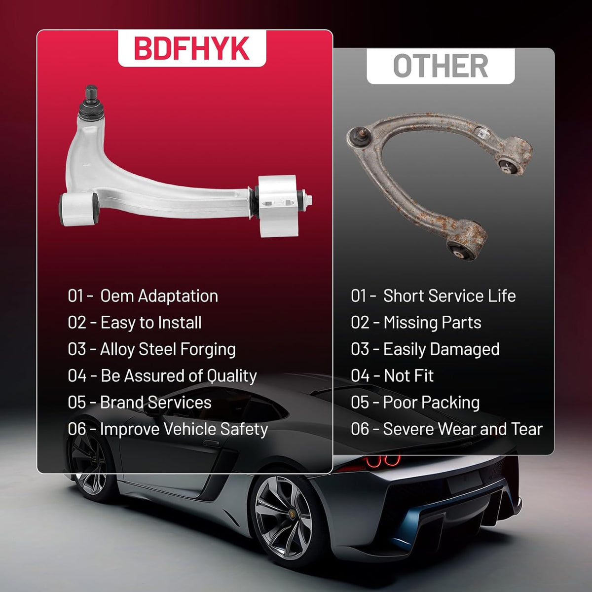 [BDFHYK support]BDFHYK Control Arm, backed by a 1-year support and 24-hour assistance, peace of mind with dependable help and prompt service whenever you need it