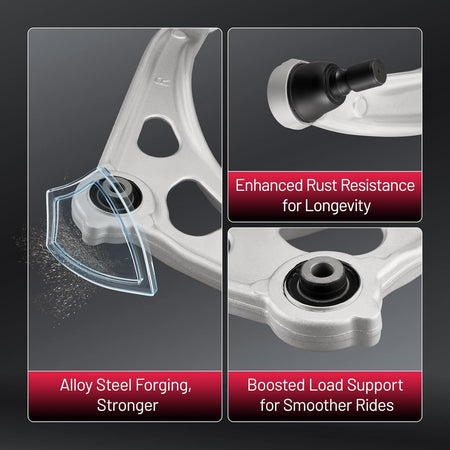 【Control Arm Features】 The control arm improves stability, handling, and driving comfort, with a protective finish that helps extend service life. Made from forged alloy steel, it delivers reliable performance, reduces noise, and ensures accurate fitment for safe and consistent driving