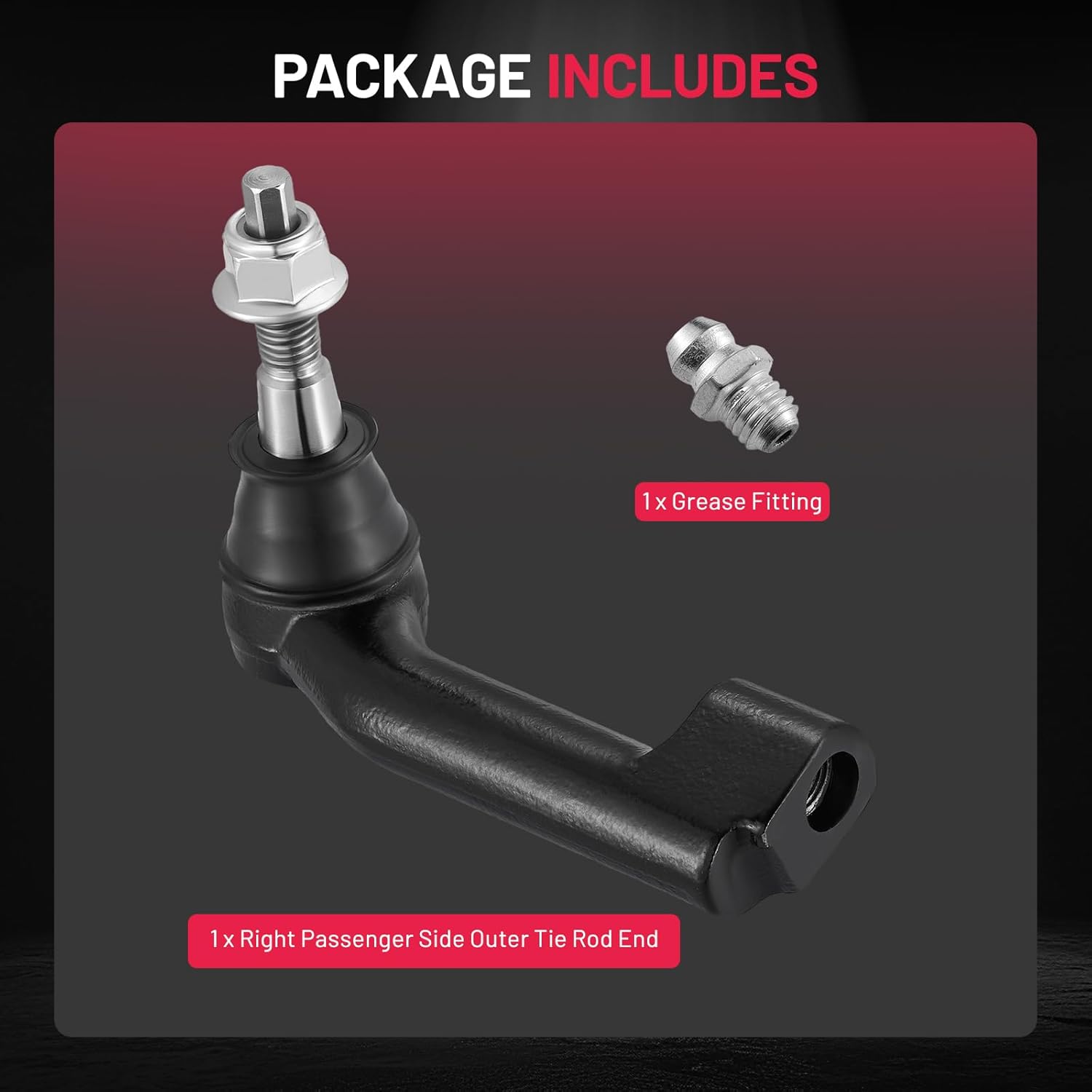【Tie Rod Ends Kit Include】1 x ES800514 Front Right Passenger Side Outer Tie Rod End, 1 x Grease Fittings.