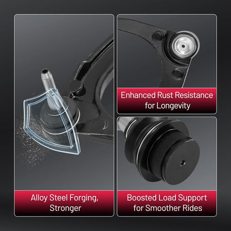 [Control arm design] Designed with forged alloy steel, this OEM-compatible product ensures premium quality, improved performance, simple installation, and reduced noise for a seamless experience.