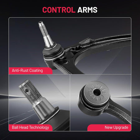 [Products contain] 1x Front Upper Left Steel Control Arm + Pre-Assembled Ball Joint - K80669 1x Front Upper Right Steel Control Arm + Pre-Assembled Ball Joint - K80670 2x Front Lower Ball Joints - K6541 Fitment: **Lower Ball Joints Fit STEEL Control Arms ONLY**