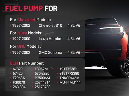 - 【Compatibility】- Compatible with 1997-2002 Chevy S10 Pickup V6 4.3L; 1997-2002 GMC Sonoma Pickup V6 4.3L; 1997-2000 Isuzu Hombre Pickup V6 4.3L