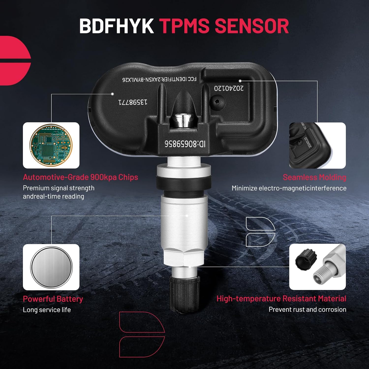 Customer Service: 1-year Assurance. All BDFHYK Tire Pressure Monitoring System (TPMS) sensors undergo rigorous testing during manufacturing to ensure top quality. If you have any questions, please do not hesitate to contact us. Your satisfaction is our top priority