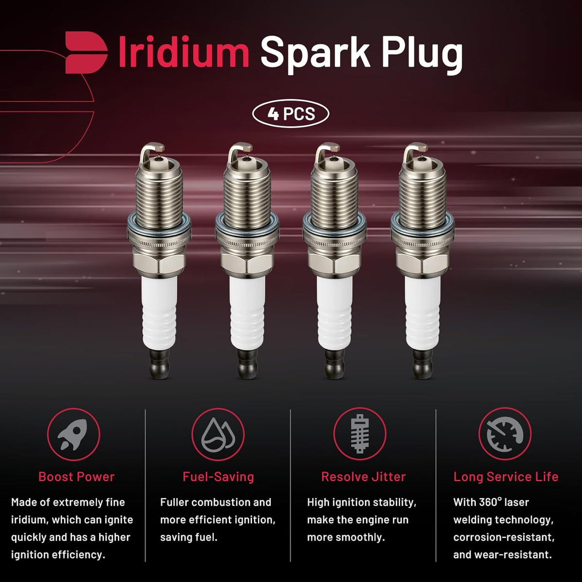 BDFHYK IFR6A-11 Iridium Spark Plugs Compatible with Lexus for Toyota HS250h ES330 GS300 LS430 Matrix Camry 4Runner RAV4 Tundra Sienna 1.6L 2.0L 3.0L 4.0L Engine Replacement for 3297, Set of 4