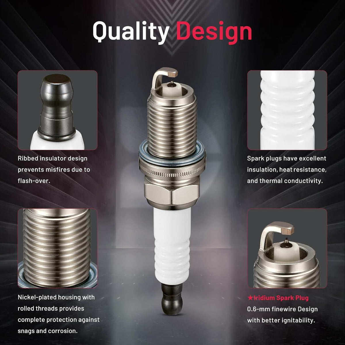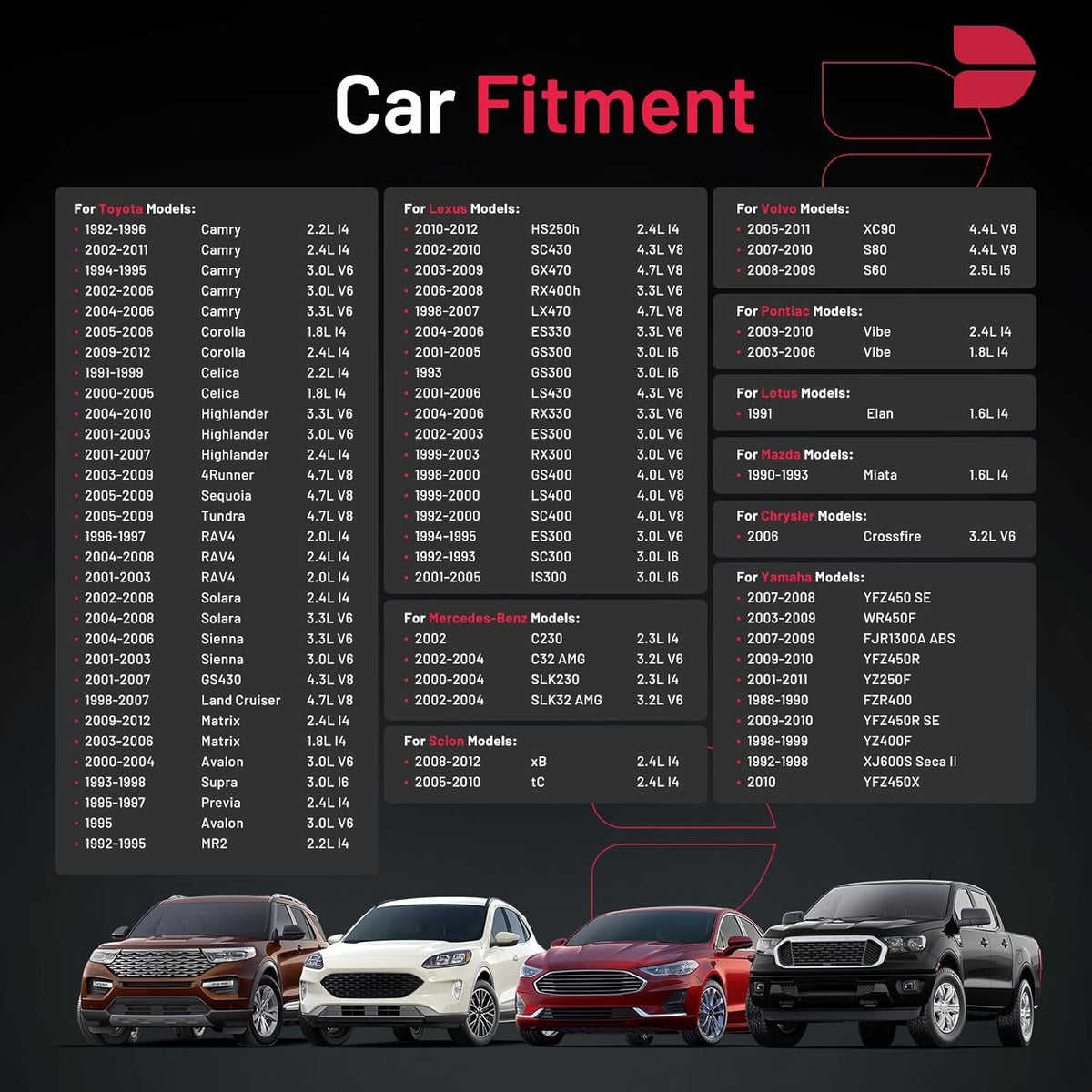 【Compatibility Information】:Spark Plug IFR6A-11 compatible with Lexus HS250h SC430 GX470 RX400h GS430 LX470 ES330 GS300 LS430 RX330 ES300 RX300 etc.Compatible with Toyota Matrix Camry Corolla Highlander 4Runner Sequoia Tundra RAV4 Solara Land Cruiser Sienna Celica Avalon Supra Previa MR2.Compatible with Chrysler Crossfire compatible with Mazda Miata compatible with Mercedes-Benz C32 AMG SLK230 SLK32 AMG C230 compatible with Pontiac Vibe compatible with Volvo XC90 S80 S60.
