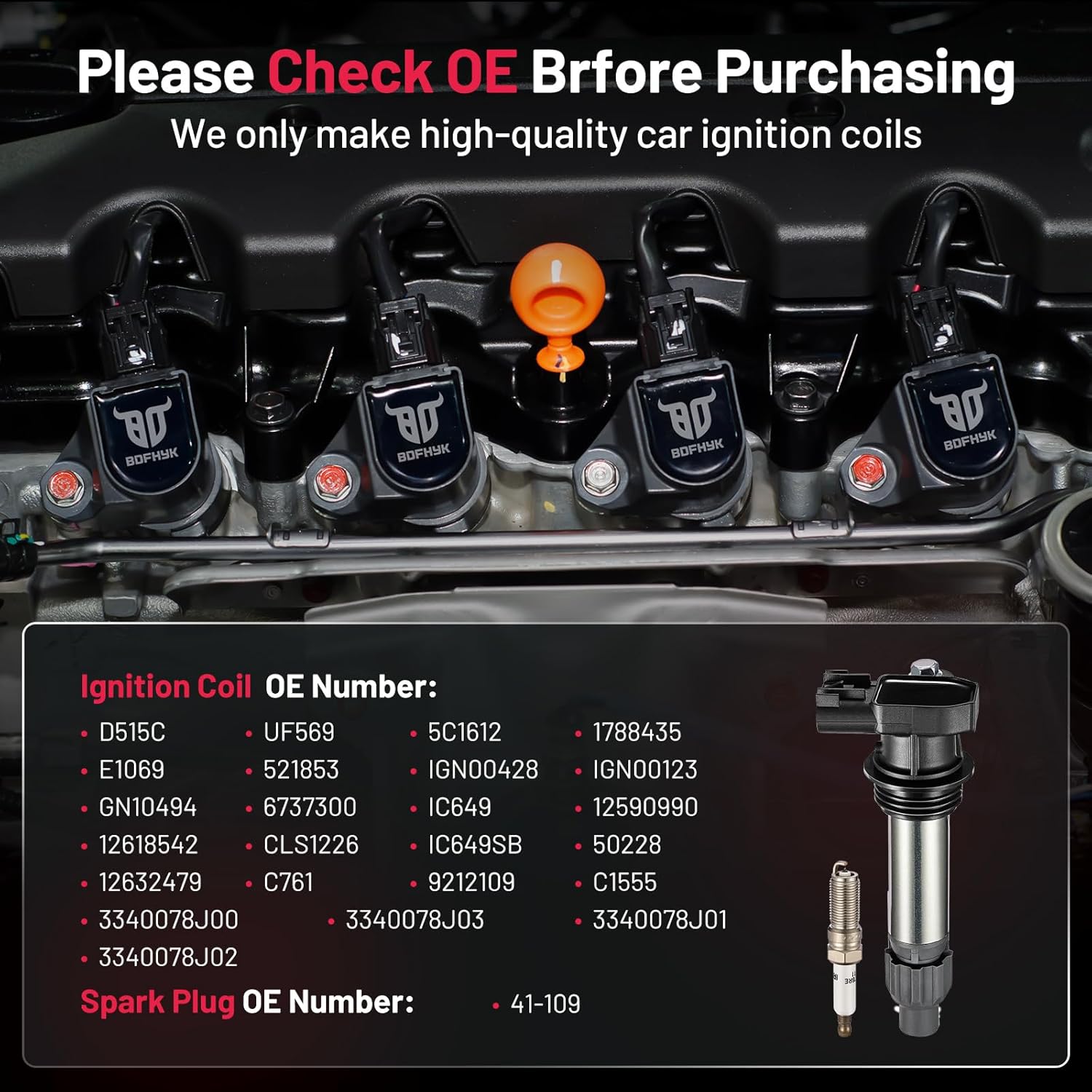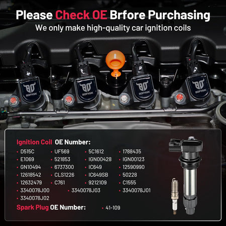 【Yes, you need a new one!】If your car has been used for a long time(over 80000km) and has problems like car shaking, start-up failure, speeding up slowly, and increasing fuel consumption, you may need to change a new set of spark plugs and coil packs. BDFHYK ignition coil and spark plug can offer you a professional user experience and make your car like new. You may choose it with confidence.