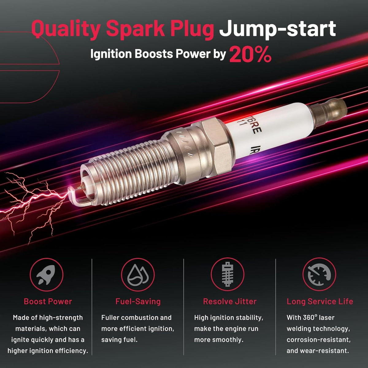 【Features of spark plug:】Professional spark plus is made of high-tech materials. We choose iridium electrode and unique ceramic to make sure your car can have a new life after being installed. The car will start quickly and speed up in a short time as powerful as a new car. ‼Please check OE: 41-109.