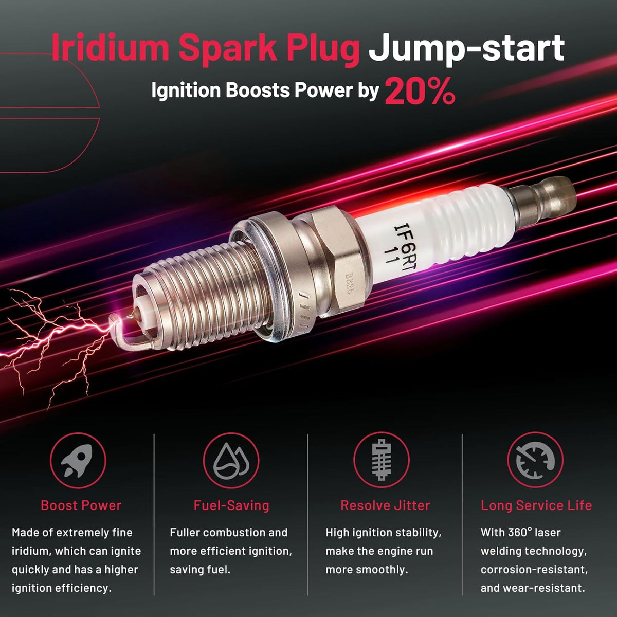 【Features of spark plug:】Professional spark plus is made of high-tech materials. We choose iridium electrode and unique ceramic to make sure your car can have a new life after being installed. The car will start quickly and speed up in a short time as powerful as a new car. ‼Please check OE: 4503.