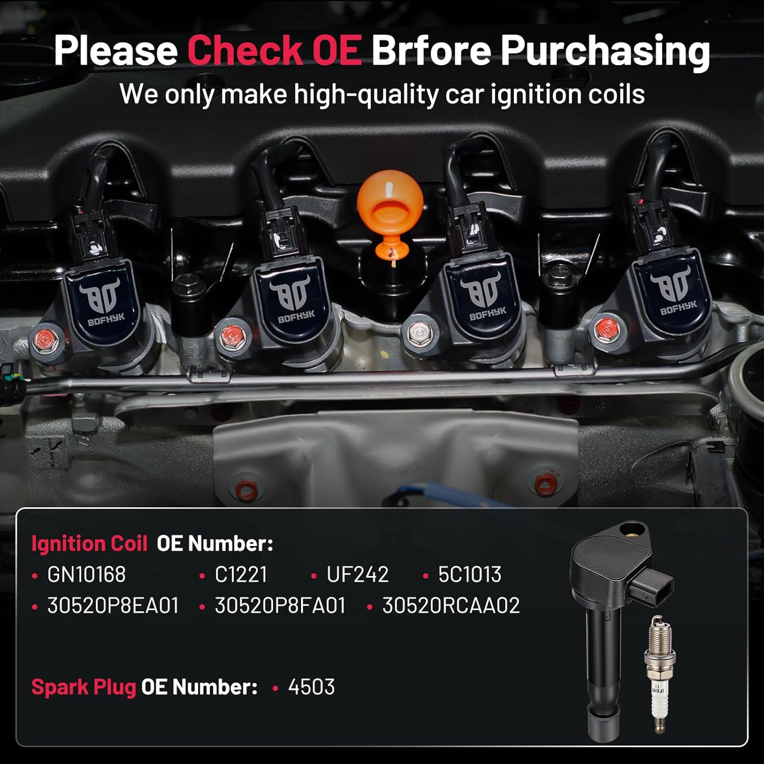 【Basic Info:】Ignition Coil UF242 & Spark Plug 4503 are compatible with Acura CL TL Honda Accord Odyssey. Please check detail fitting info from pics or detail page. OE checking is necessary before buying. Please choose suitable one with confidence.
