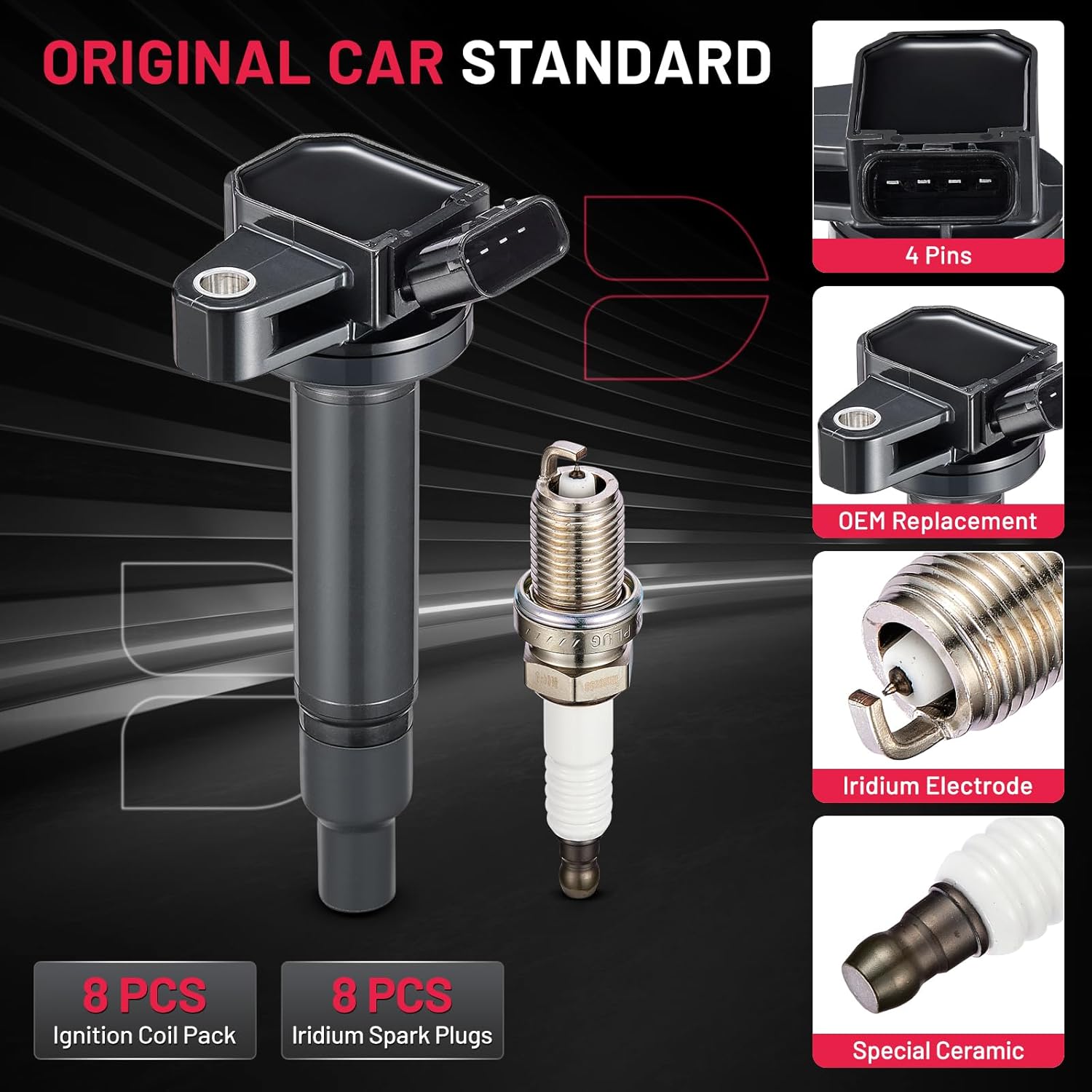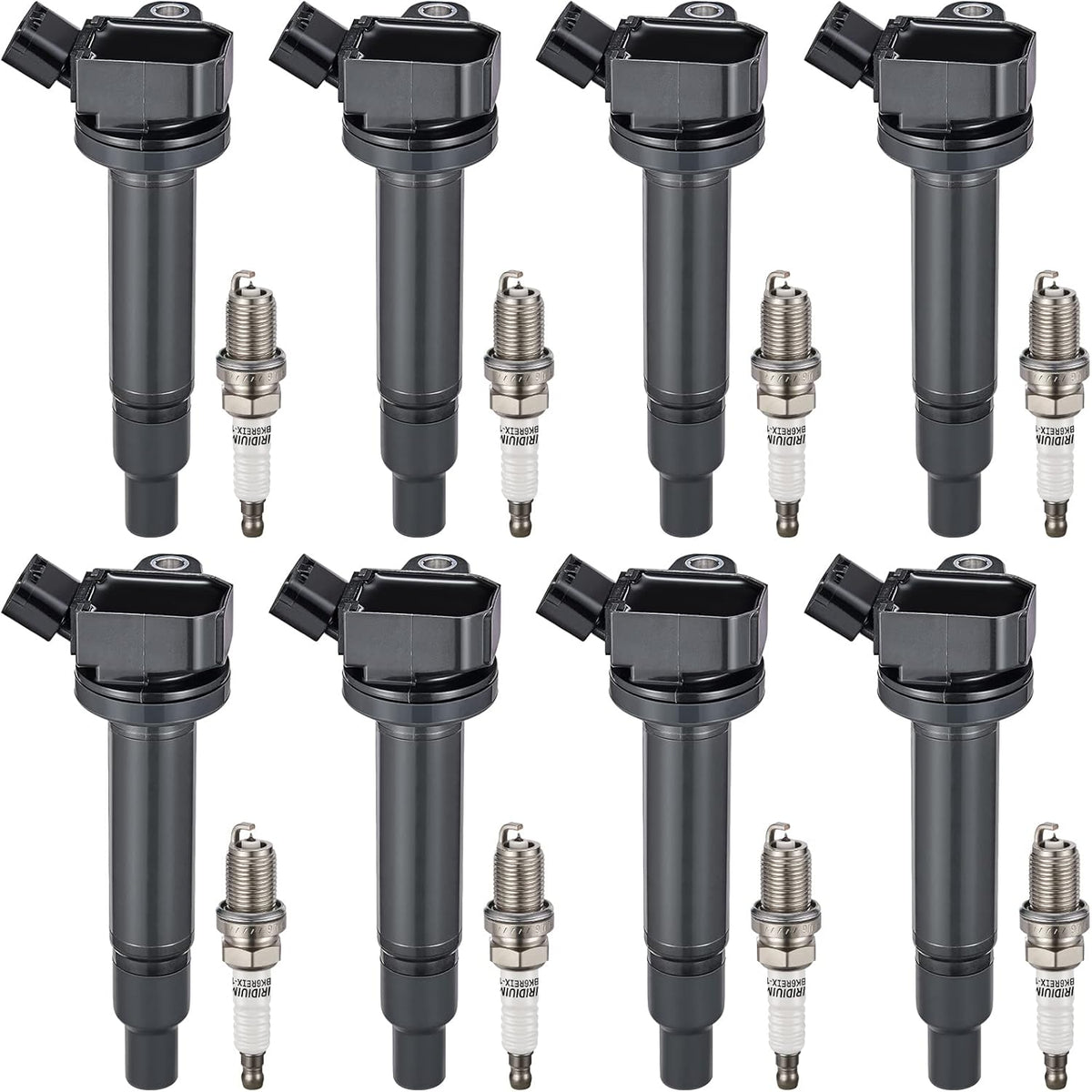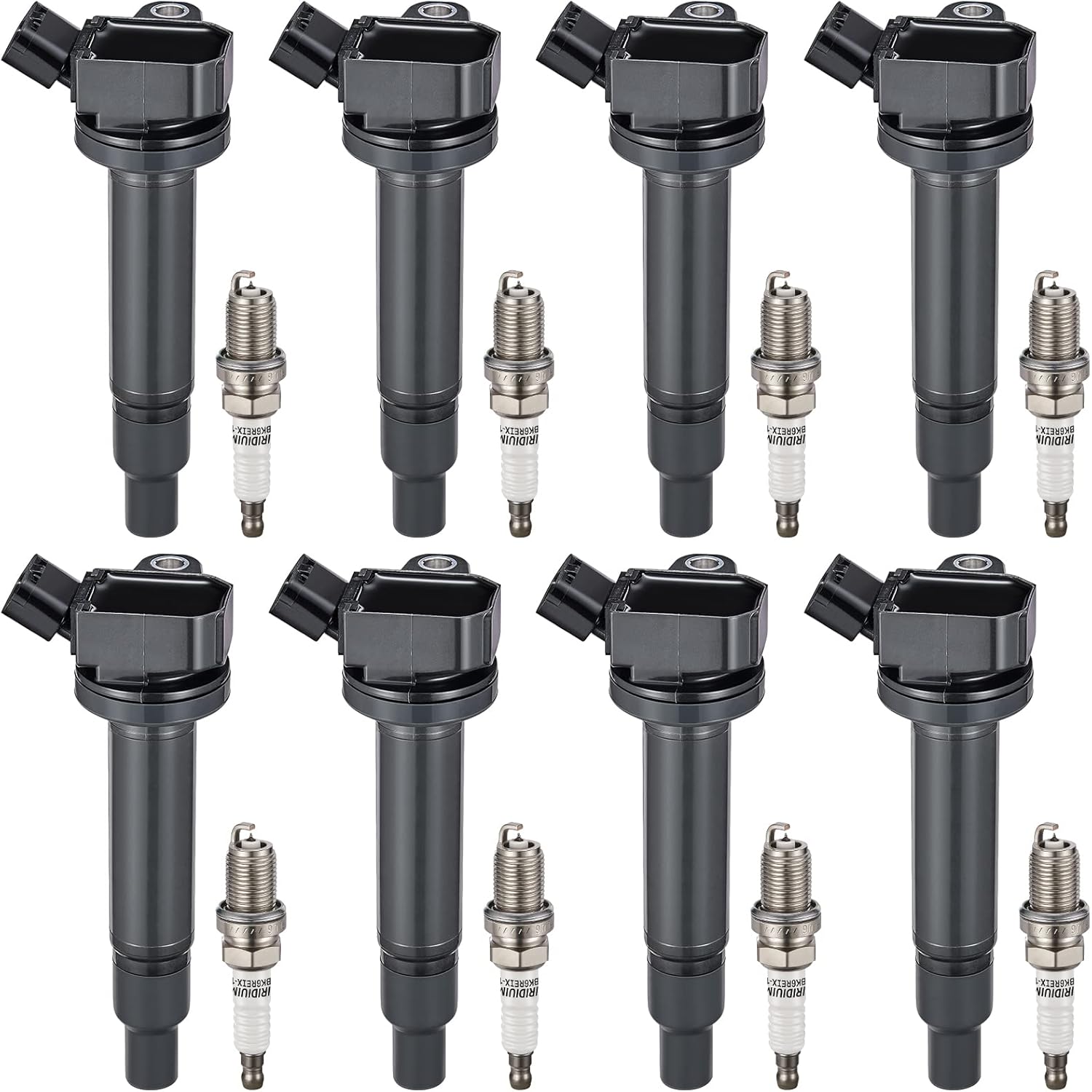 BDFHYK Ignition Coil Pack and Spark Plug Set of 8 Compatible with Lexus GS430 GX470 LS430 LX470 SC430 4Runner Land Cruiser Sequoia Tundra 4.3L 4.7L V8 Replacement for UF493 4504,Set of 4