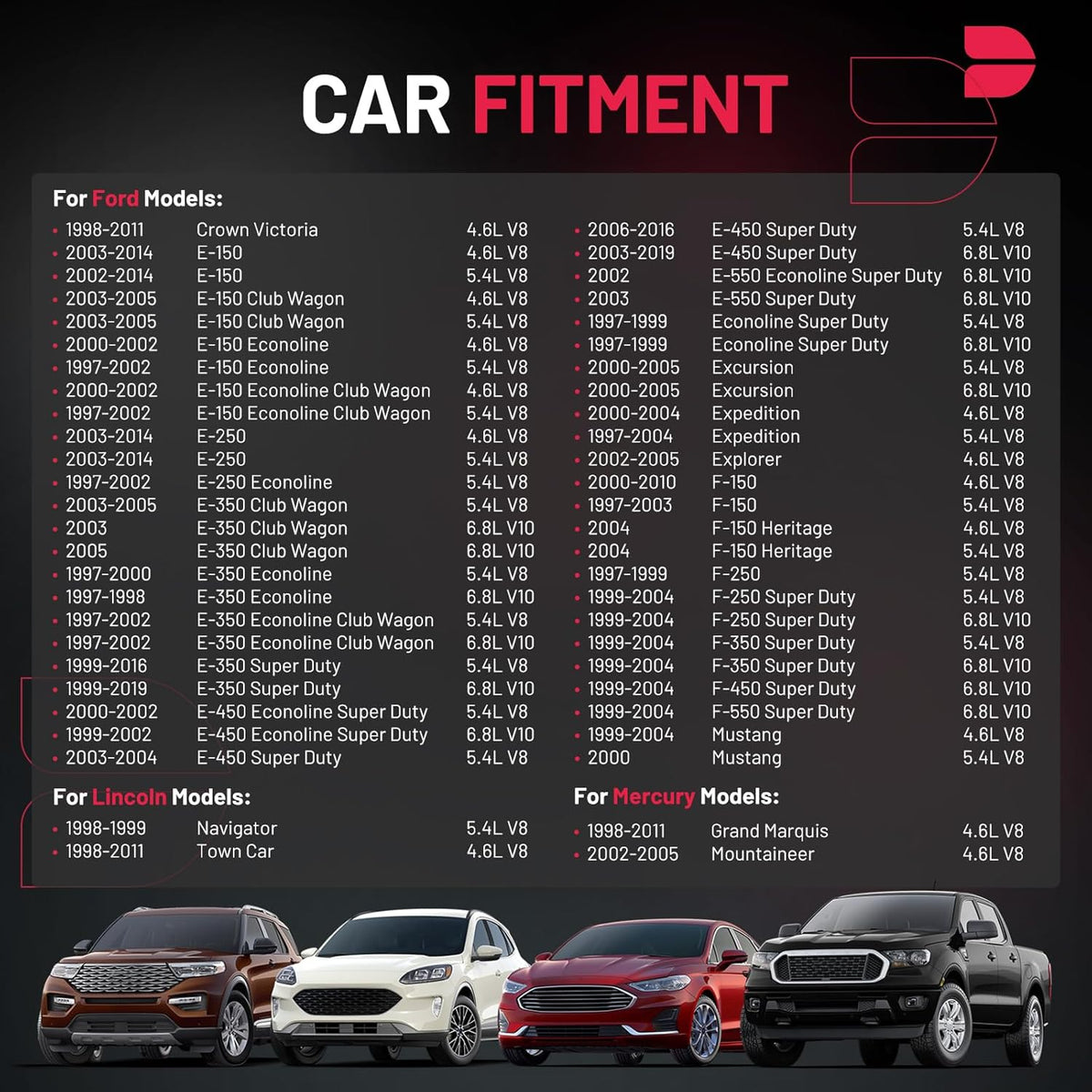 【Ignition Coil Compatible with】Compatible with Ford F150 1997-2010, Ford F250 1997-1999, Ford Explorer 2002-2005, Ford Expedition 1997-2004, Ford Mustang 1999-2004, Ford Crown Victoria 1998-2011; Compatible with Lincoln Navigator 1998-1999, Compatible with Mercury Grand Marquis 1998-2011.ect. Please confirm the compatibility according to the year/make/model of your vehicle and the OE number of the replaceable part.
